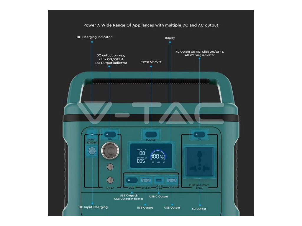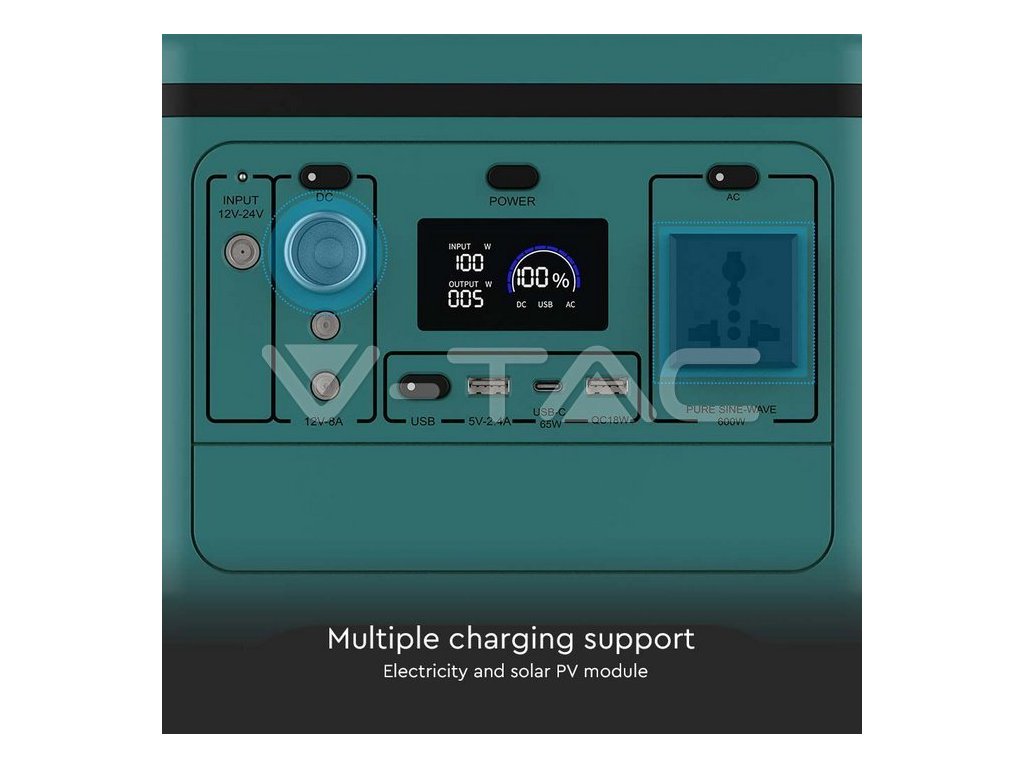 Přenosná nabíjecí stanice má vestavěný vysoce účinný lithiový článek a může se používat jako domácí, kancelářský nebo vnější nouzový záložní zdroj. K dispozici jsou také vestavěné porty USB-A a USB-C pro snadné nabíjení mobilních telefonů, tabletů, fotoaparátů a jiných zařízení. LED obrazovka displeje má vysoký jas pro snadnou viditelnost zejména v jasném vnějším prostředí. Stanice je také vybavena ochranou před přebitím, přepětím, zkratem a regulací teploty.Pro nabíjení můžete zvolit síťovou elektřinu nebo solární energii bez externího adaptéru. Systém správy napájení je nakonfigurován tak, aby zajistil dlouhou životnost a bezpečnost baterie.